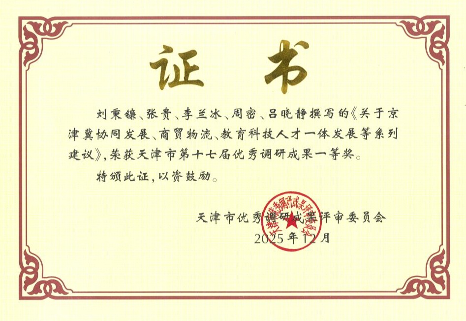 天津市第十七届优秀调研成果奖一等奖