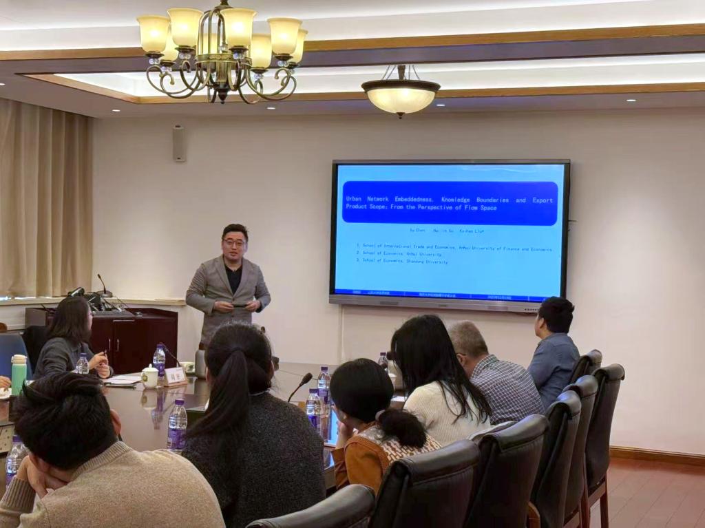 2025年12月19日,我院邀请山东大学经济学院刘铠豪副教授做客“南开经发院青年学者沙龙”,以《城市网络嵌入、知识边界与出口产品范围—基于流动空间的视角》为题开展学术讲座。讲座由我院周密教授主持,张贵教授、王家庭教授、郭佳宏助理研究员为互动嘉宾。